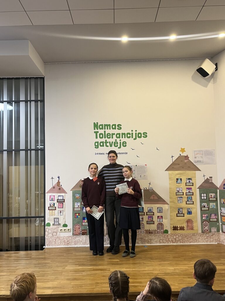 Ketvirtos klasės mokinės pristatė pranešimą tema “Tolerancija per pagalbą: kaip pagelbėti mokiniams turintiems mokymosi sunkumų”. Jo metu ketvirtokės pasidalino savo klasės pavyzdžiais, kaip padeda savo bendraklasiams.