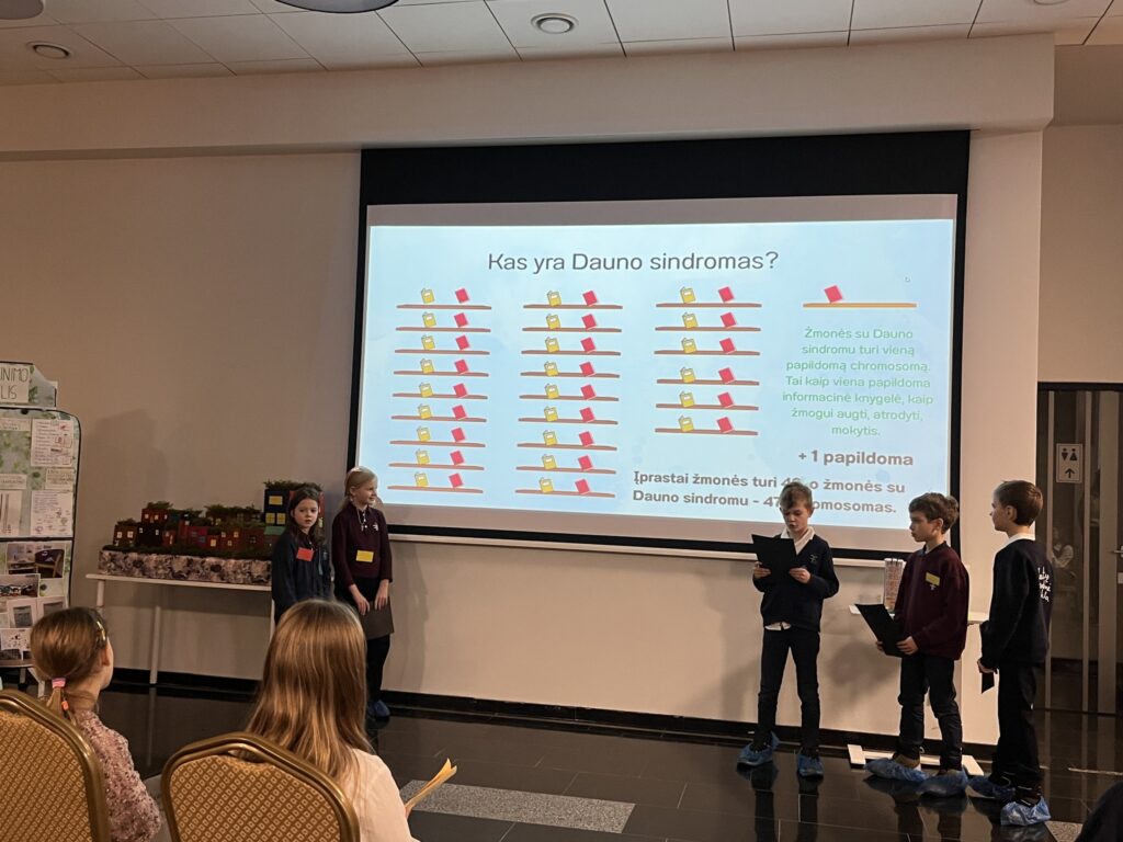 O antros klasės mokinių komanda kalbėjo apie žmones, turinčius Dauno sindromą. Kvietė juos pažinti, priimti, matyti ne tik jų skirtumus, bet ir panašumus.