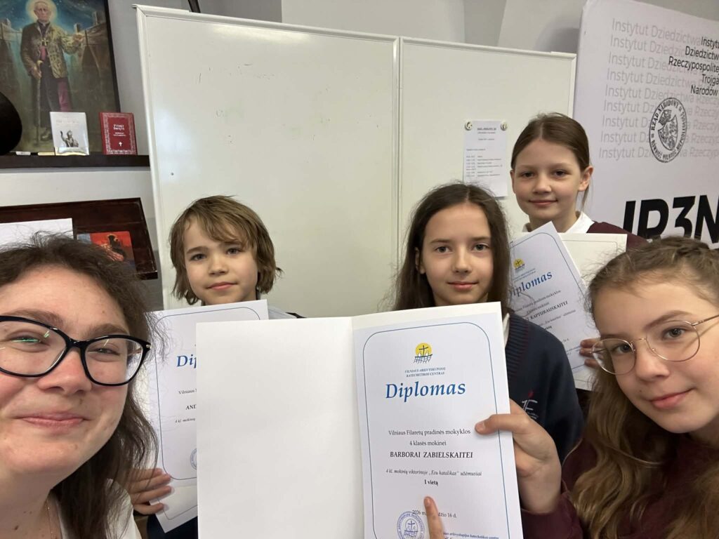 Didžiuojamės Vilniaus Filaretų pradinės mokyklos mokiniais, kurie tikybos viktorinoje „Esu katalikas”, vykusioje 2026 m. kovo 19 d., iškovojo pirmąją vietą!